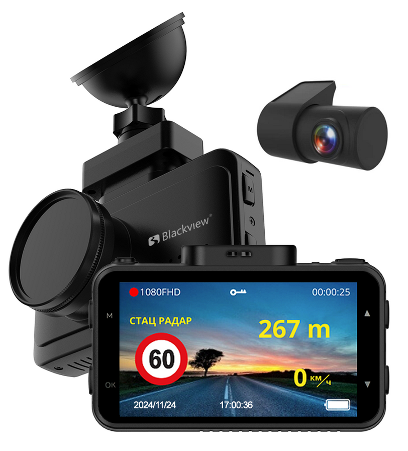 Многофункциональное компактное комбо-устройство 2 в 1 V - флагман в линейки регистраторов BLACKVIEW ! Обеспечивает высокое качество изображения, возможность легкой интеграции в эргономику салона авто и запись в разных форматах. Незаменим на дорогах в городском и особенно в загородном режиме. За счет компактного корпуса занимает мало места на лобовом стекле и не привлекает лишнего внимания. Высокое разрешение видео FULL HD позволяет различать мельчайшие детали на большой дистанции. Приложение для смартфонов Blackview Drive позволит пользователю управлять, настраивать и обновлять устройство и базы полицейских радаров в любое время.