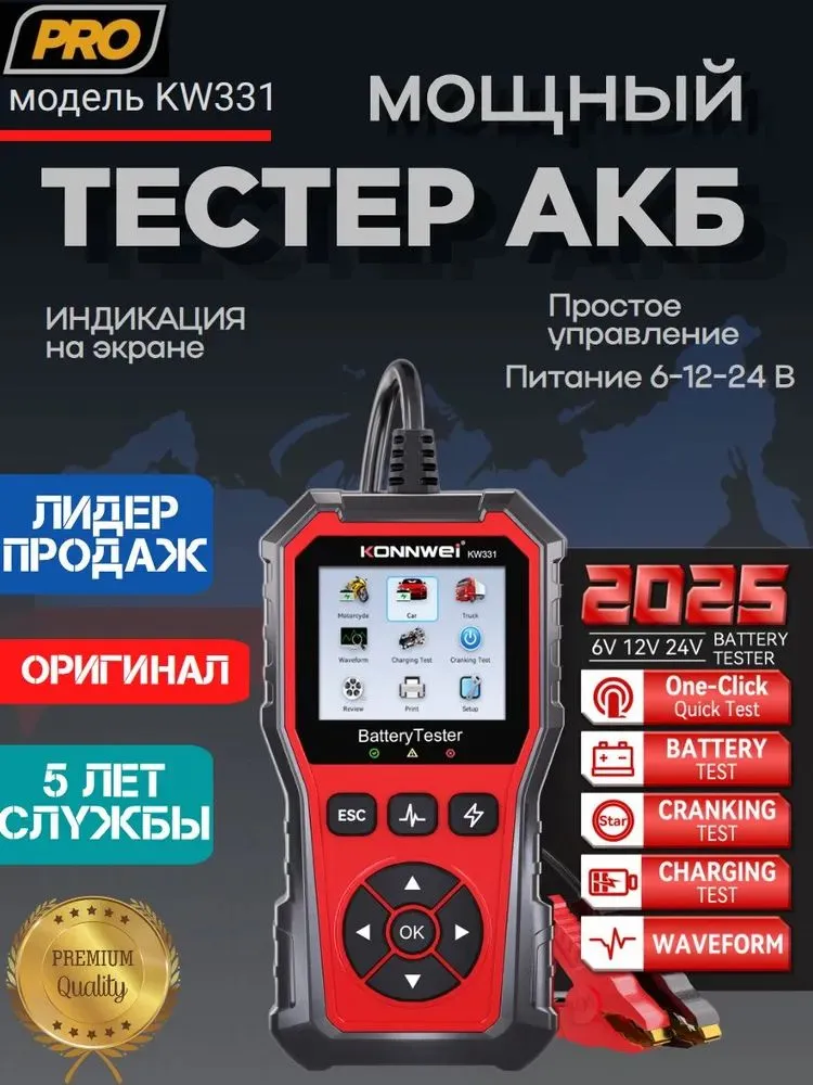 Автомобильный тестер аккумулятора Konnwei KW331